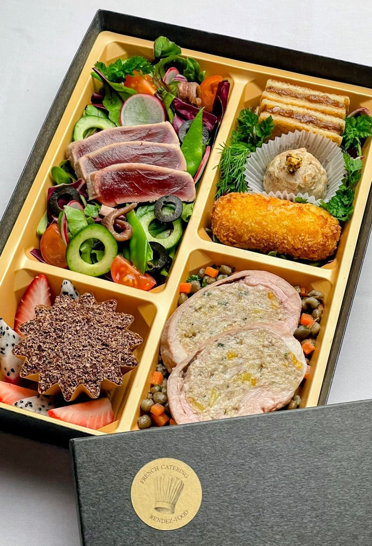 In France, the apéritif is more than food; it is a ritual of connection, conversation, and generosity. We have translated this spirit into a bento format, carefully curated and beautifully arranged for both visual impact and convivial enjoyment.