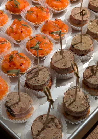 Perfect for corporate events, private parties, and upscale receptions. Our bite-sized creations are crafted with seasonal ingredients, combining French elegance with modern flair. Whether it's a chic standing cocktail or a stylish networking event.